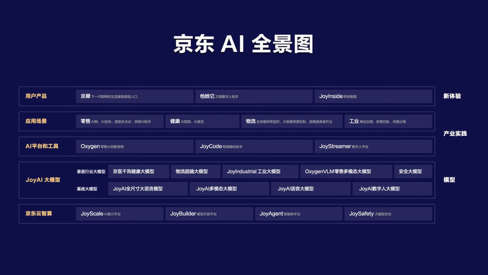 当前,AI正在重构各个产业的供应链。基于供应链及各个产业场景的技术积累和创新,京东已经在智算基础设施、模型、平台、场景和产品层面形成了完整的能力。此次大会上,京东围绕全新升级的大模型品牌JoyAI,发布了三大全新AI产品,四大场景深度AI应用以及多个技术平台。
